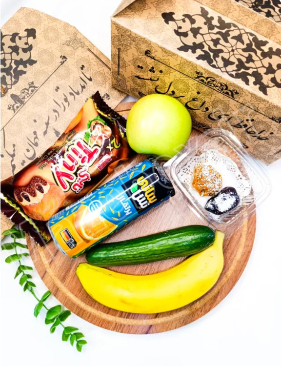 پک پذیرایی ترحیم vipدارای آبمیوه قوطی،کیک،۳مدل میوه،خرماو حلوا در پک جعبه میباشد💐